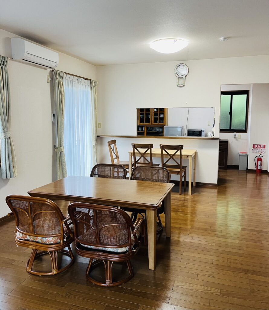 敷地内にある農ある暮らし研究所の広間、台所の使用は別料金となります。使用できる時間は宿泊当日の17時〜20時、料金は5000円です。