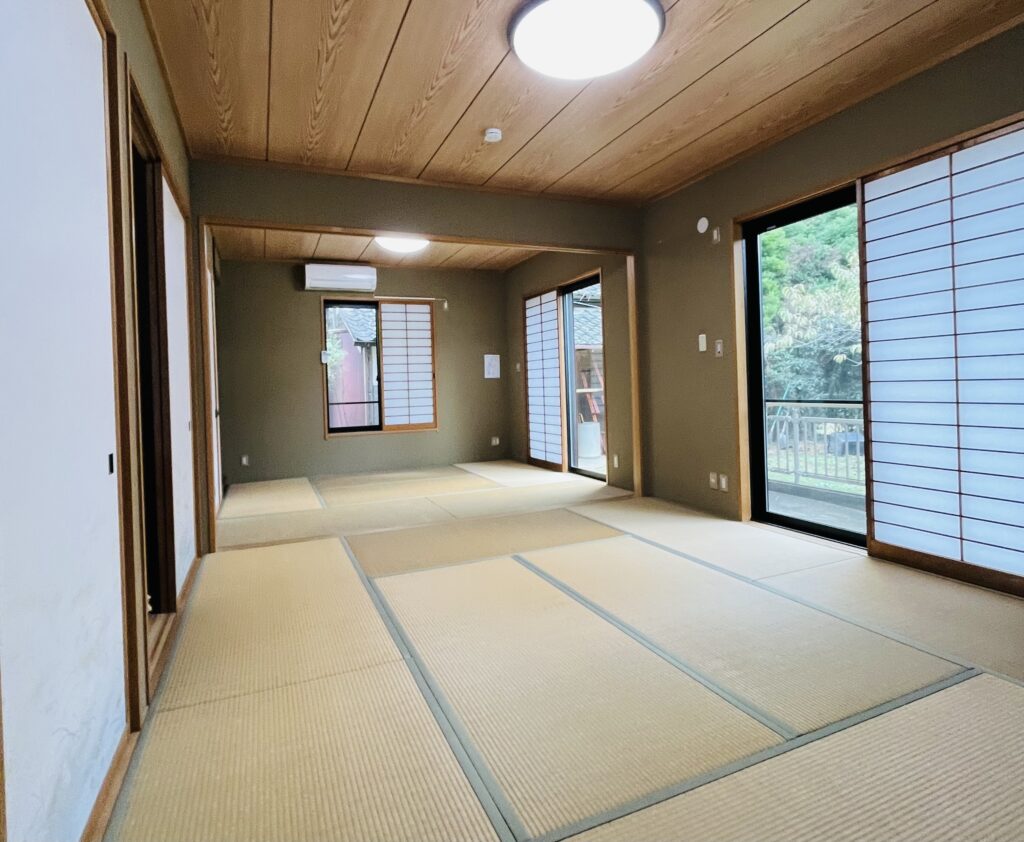 宿泊は1グループ限定の1棟貸し、5人まで宿泊できます(5人以上はご相談ください)。客室は畳敷の和室2間、台所には調理器具や食器類を備えています。